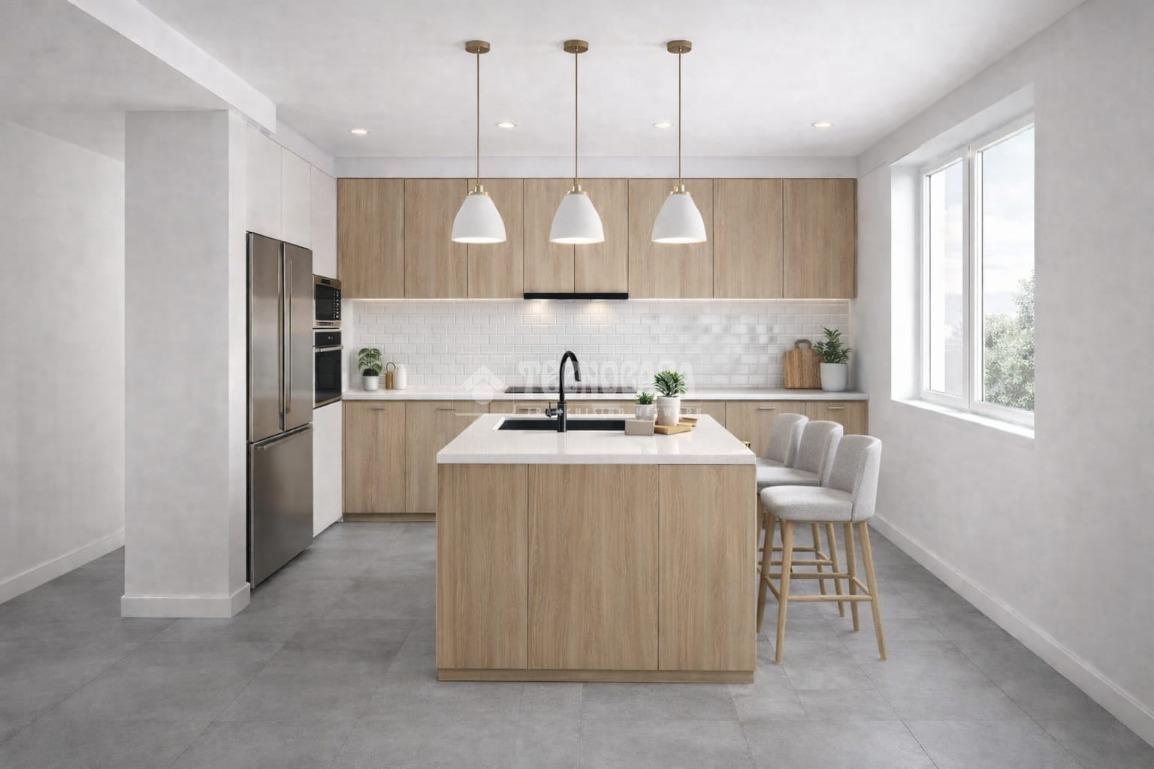 Amplio salón-comedor con acceso directo a una agradable terrazaCocina de diseño con isla, totalmente equipada con electrodomésticos integradosTres dormitorios dobles, dos de ellos con armarios empotradosDos baños completos, uno en suite en el dormitorio principalLa vivienda contará con acabados de primera calidad, cuidando cada detalle: