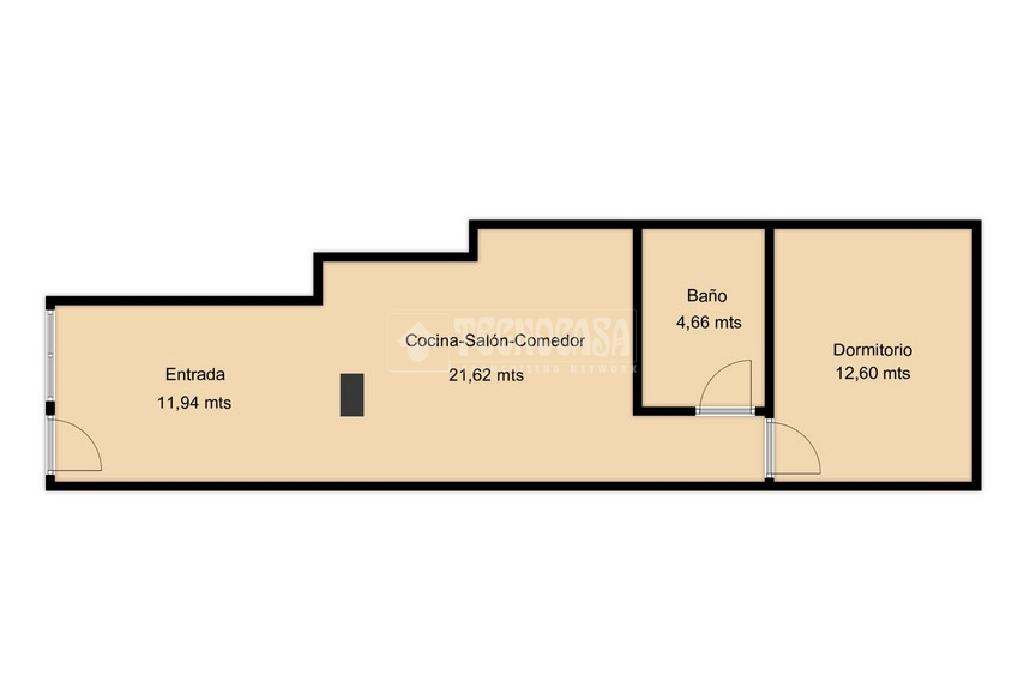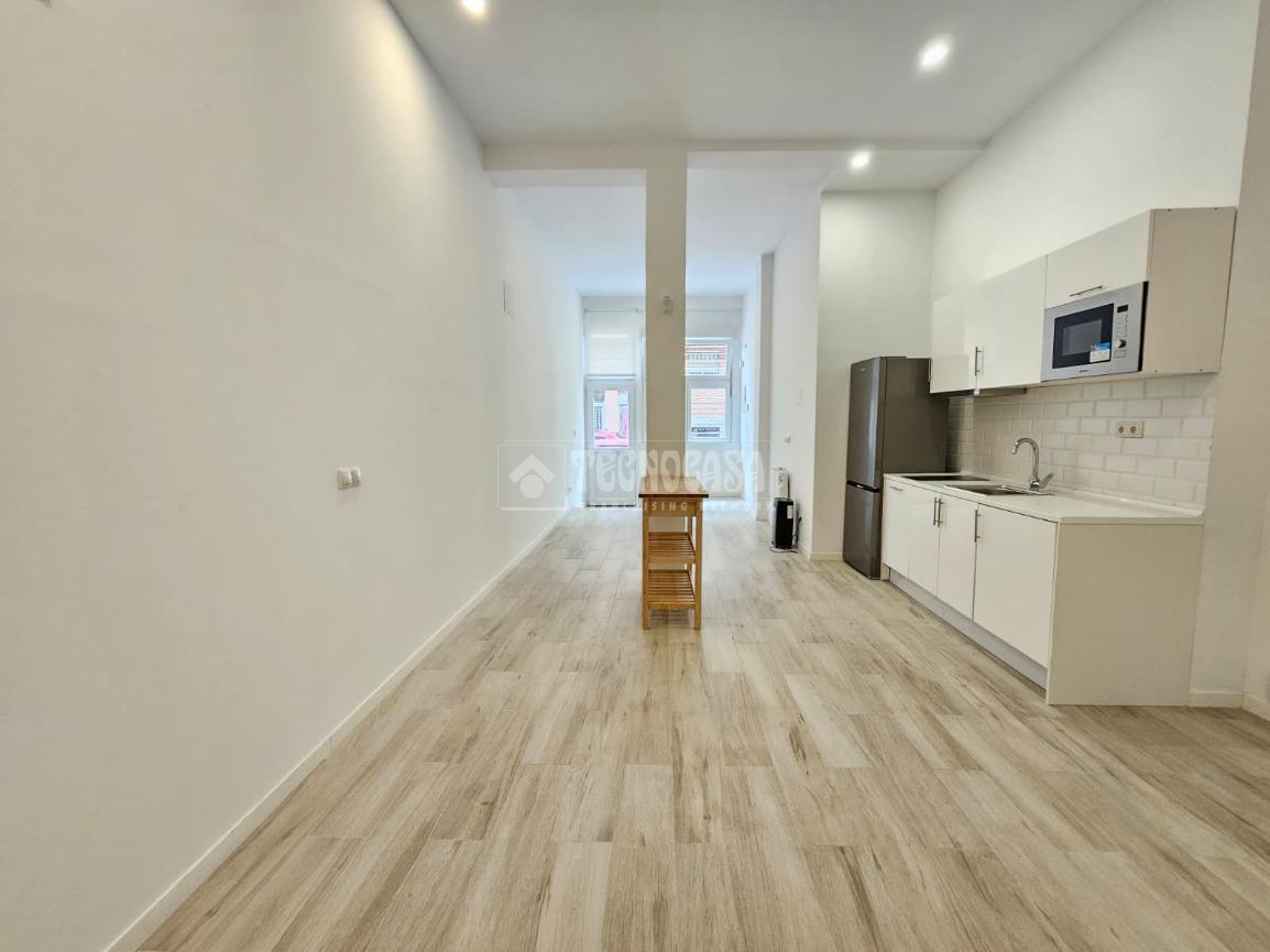 Piso totalmente nuevo, acceso inmediato por la calle, con gran ventanal, un ambiente de salón-comedor-cocina con una gran altura para aprovechar, cocina americana, habitación con iluminación natural en el techo, un baño interior con plato de ducha, calefacción de eléctrica individual, suelo de tarima.